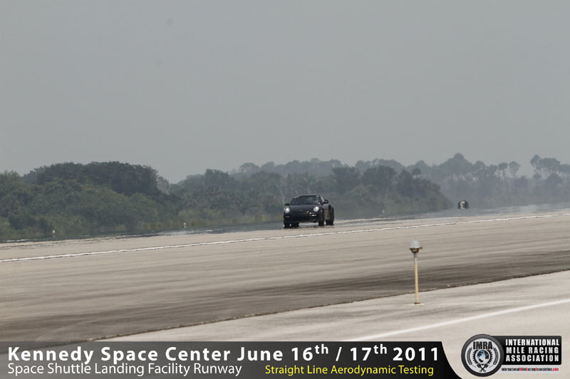 NASA- A modified Ford GT set a world record during testing June 16 and 17 when Johnny Bohmer reached 223 mph on the runway of NASA Kennedy Space Center's Shuttle Landing Facility. A Guinness World Records judge authenticated the accomplishment, confirming Bohmer's place in automotive history, along with Kennedy's role in the achievement. Bohmer's Performance Power Racing modified the car and was testing the suspension and aerodynamic coatings at the runway. The record is the first in the new Guinness category of standing mile for a street-legal car.